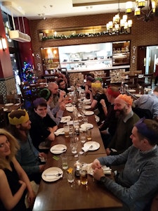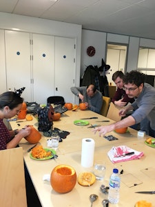Another busy year has seen our team numbers swell again. This Summer we were pleased to recruit Jack to our team, filling the role of Graduate Developer, followed by Chris as Frontend Developer a week later. Throughout the year we have enjoyed getting together as a team, whether that be one of our once-monthly #HappyMonday events or one of our team building activities. Some highlights this year include indoor climbing, sleighing, a Halloween themed Happy Monday, complete with spooky buffet and pumpkin carving, and our festive Happy Monday incorporating beer chocolate pong, buffet and oven mitt pass the parcel (certainly an experience!). We were also pleased to take part in helping Liverpool Science Park (the building where we are based) raise funds for our corridor neighbours—Huntington’s Disease Association. We share a snapshot of our year in the photos below.