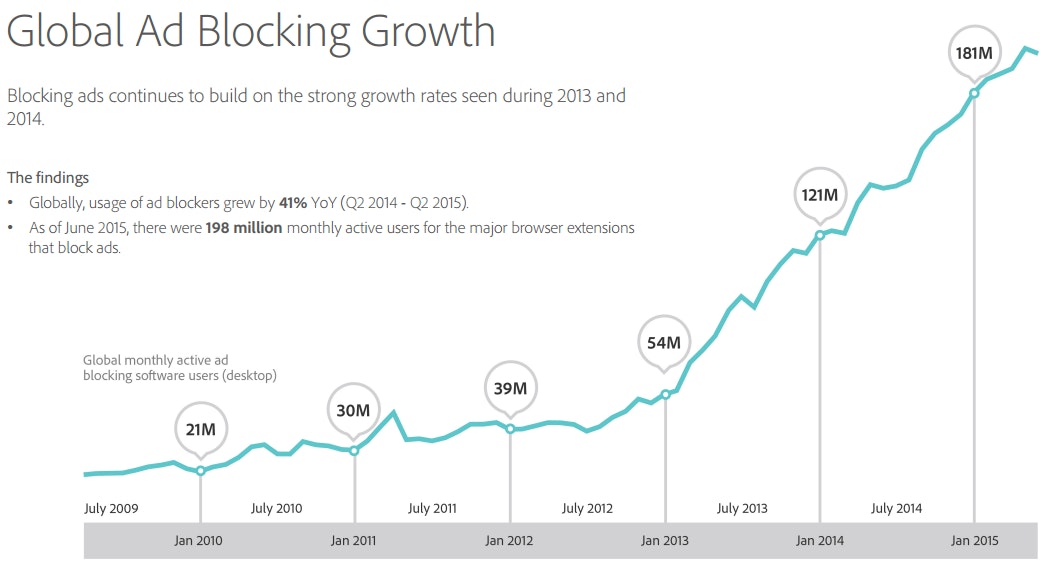 This chart is out of date. The problem is far worse for publishers today. If you look at the issue demographically, ad blockers are huge with younger users. They don’t see ads the way we all used to ten years ago.