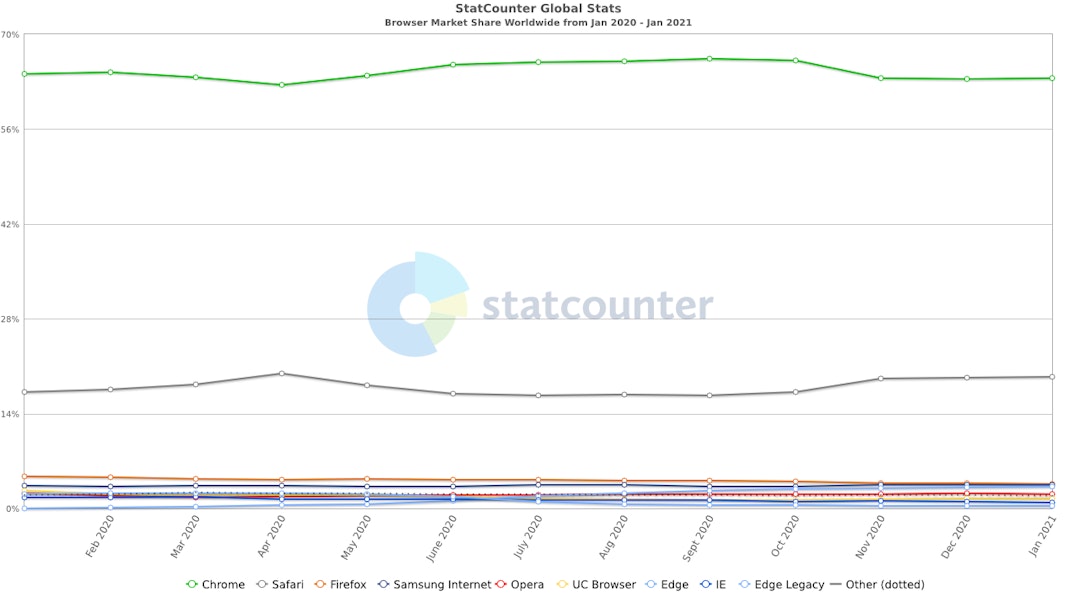 We’ve reached our midway point and something that can easily be overlooked in the development process — we’re talking browser testing. In the last twelve months can you guess what the biggest browser share is worldwide? Yep, you guessed it — Chrome. Not surprising, but with a share of 63%, that means 37% is unaccounted for.