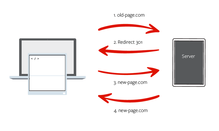 Coming in at number two in our list is links! When you come to launch your new site, have you maintained your old links? If your link structure hasn’t been maintained, it’s important you have redirects in place. Take a look at the diagram below to get a feel for what we mean.