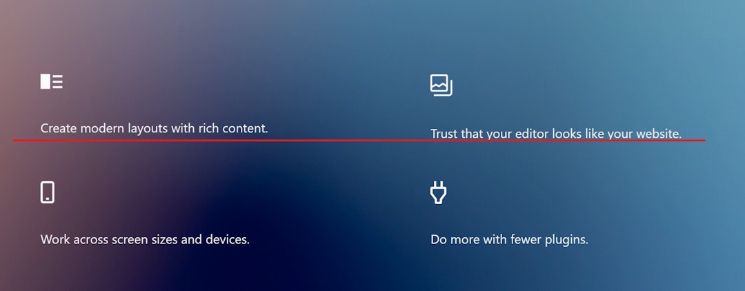 Steps to recreate: Simply visit https://wordpress.org/gutenberg/ and scroll down to the first block – look closely at the two blocks above and you can see they don’t align. You can visit in any Windows browser – Edge, Chrome or Firefox and the problem persists. I haven’t tried on a tablet, phone or alternative operating system.