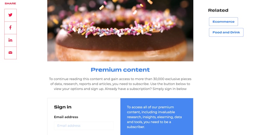 Users of the Econsultancy website can access blog posts freely. Other content such as Case Studies and some articles are accessible only with a subscription. To tempt users to sign up, there is the option to start a free trial. Clear signposting is displayed to direct viewers to the subscription options. Subscriptions are managed through an integrated third party system, Abacus ADvance.