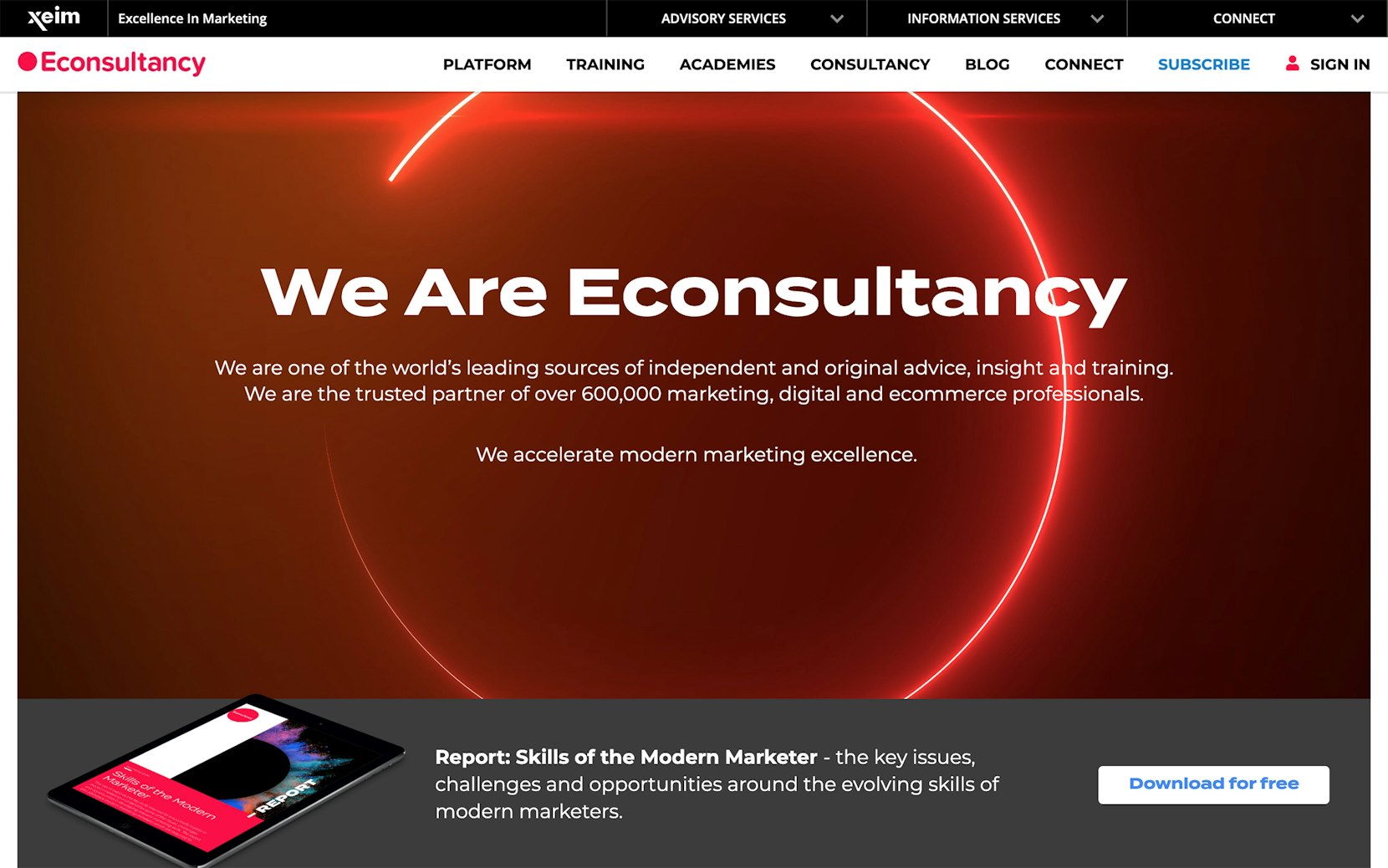Launched in 1999 as a digital community for professional marketers, Econsultancy has grown into a worldwide professional community with more than 3.8 million user interactions per month.