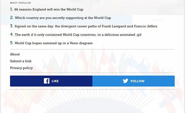 As a social media orientated site, BABB intentionally has a rather different feel to the main Telegraph site. The aim was to attract those who wouldn’t normally think to head to the Telegraph football pages, with the aim of broadening The Telegraph's audience. The site mainly comprises of images, YouTube clips and quizzes. Each post is easily shareable to social media via a share option below each post.
